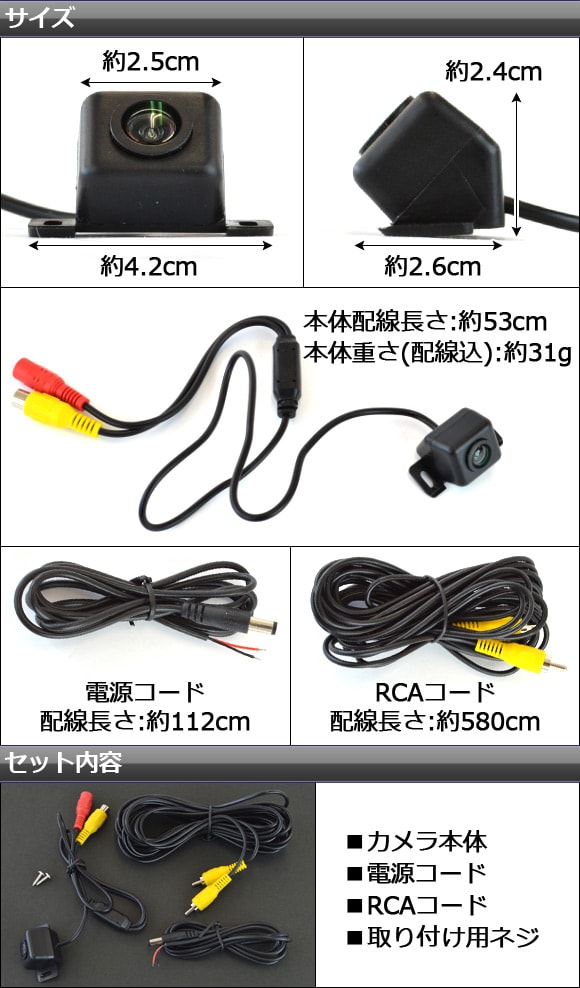 CCDバックカメラ 鏡像 12V 小型 角型 AP-CMR-002-B