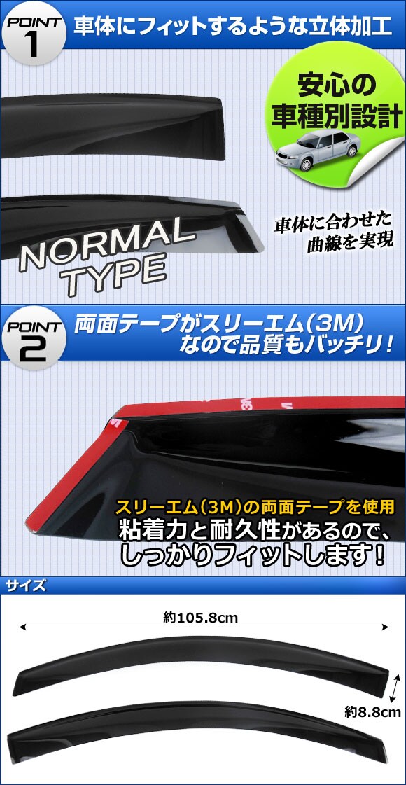 薄くて丈夫な車種別サイドバイザーです。