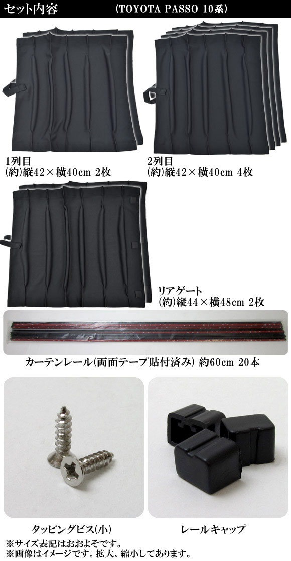 車種別専用カーテンセット トヨタ パッソ 10系 2004年~2010年 入数:1セット(8枚) AP-CT44