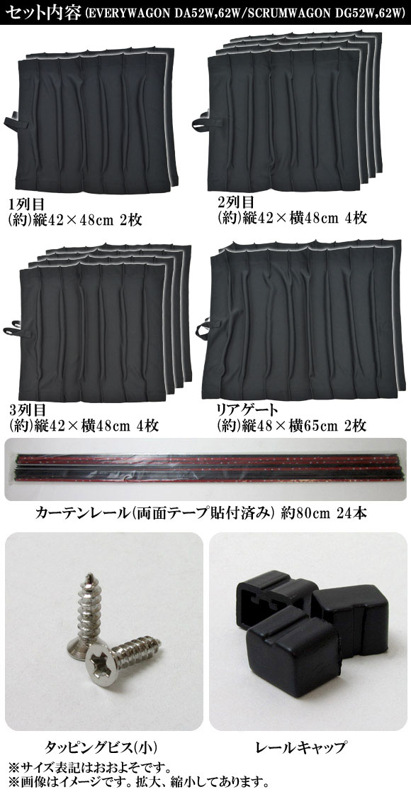車種別専用カーテンセット スズキ エブリイワゴン DA52W/DA62W 1999年~2005年 入数:1セット(12枚)