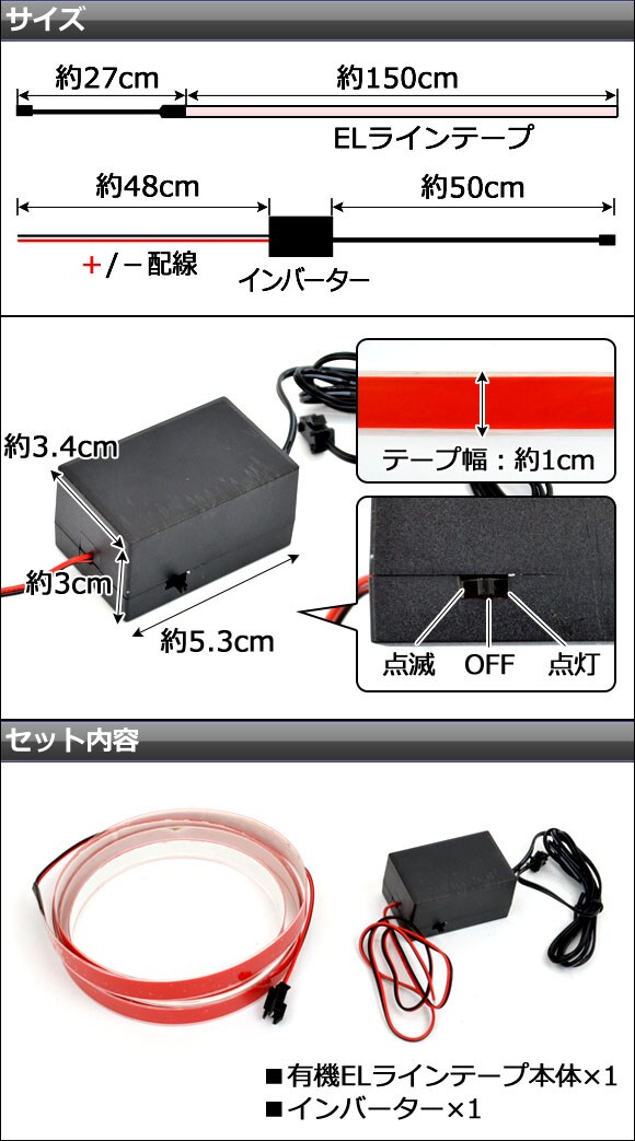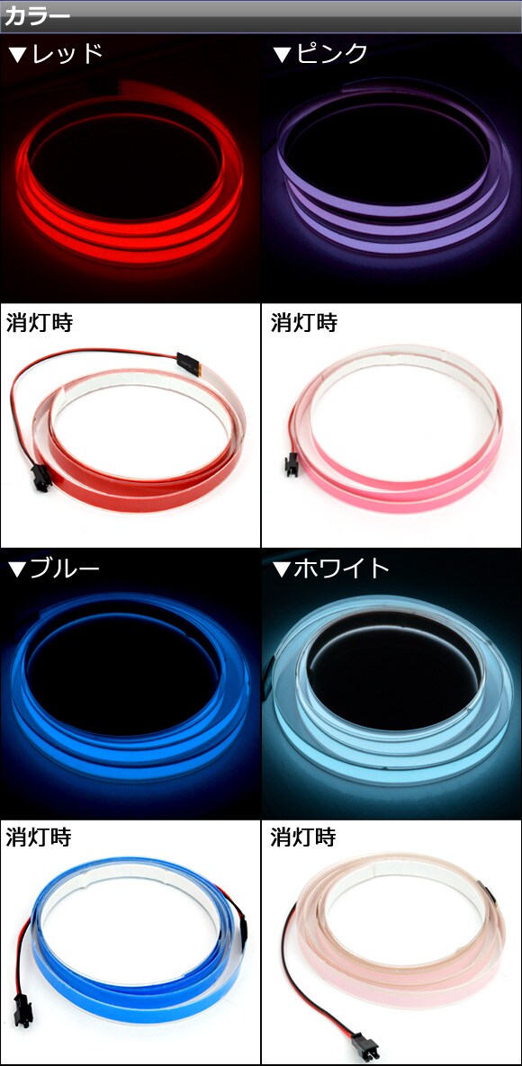 有機ELネオンテープ 発光ラインテープ 有機EL EL ライン テープ ネオン 平面 発光 点灯 点滅 間接照明 カー用品 内装 内装パーツ ドレスアップ 赤 red 桃色 pink 青 blue 白 white DC12V 12V 1.5m 150cm 1cm 1センチ automobile motorcar オートモービル モーターカー カー 車 自動車 車両