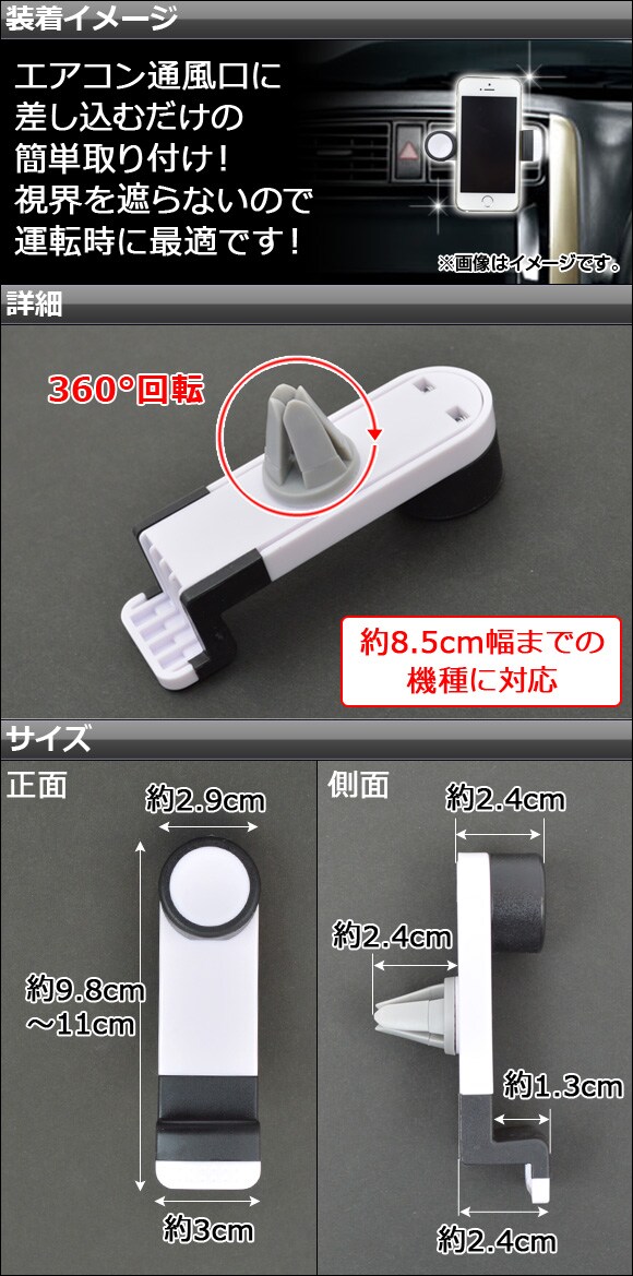 携帯電話ホルダー 車載ホルダー 電話ホルダー スマホホルダー スマフォホルダー スマートフォンホルダー モバイルホルダー カーホルダー 車載 携帯 携帯電話 スマフォ スマホ スマートフォン iPod iPhone アンドロイド Android ナビ ホルダー スタンド 固定 回転 エアコン カーエアコン 送風口 通風口 吹き出し口 白 ホワイト white アクセサリー カーアクセサリー automobile motorcar オートモービル モーターカー カー 車 自動車 車両