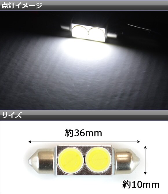 ルームランプ ルームライト LED LEDバルブ バルブ 車内灯 室内灯 2発 2灯 2個 2ワット 白 white T10 36 36mm ヒューズ球 タル型 樽型 両口金 まくら球 枕球 枕型球 枕型 ランプ ライト 照明 電球 電灯 発光 ルーム センター マップ バニティ バニテイ バイザー カーテシ フット ラゲッジ トランク フロント automobile motorcar オートモービル モーターカー カー 車 自動車 車両