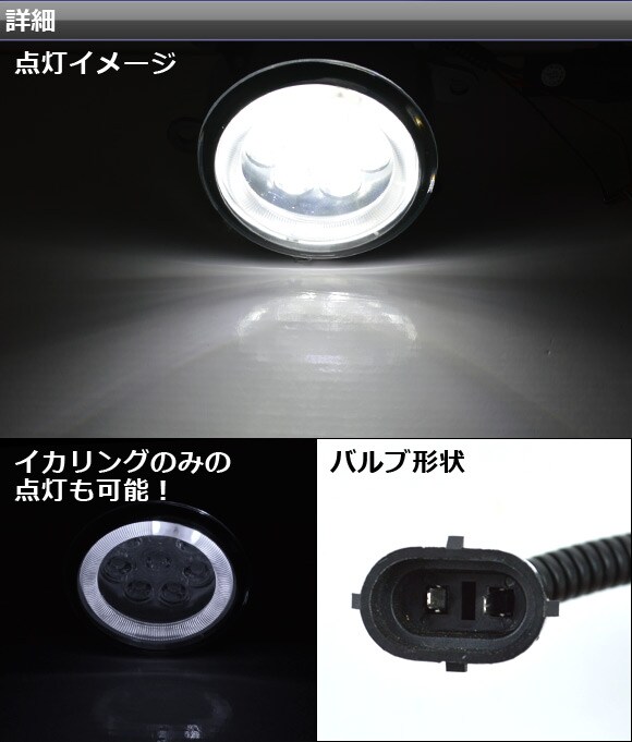 LEDフォグランプ 8連 ホンダ/スズキ/ニッサン車汎用 LEDイカリング付き AP-FOG-H01C-WH