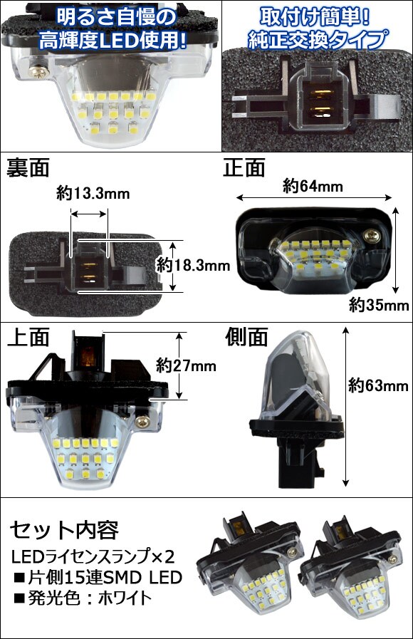 LED ライセンス ランプ ライト SMD ナンバー ナンバー灯 プレート ムーヴ ムーブ MOVE MOVECUSTOM タント TANTO TANTOCUSTOM カスタム CUSTOM ミラ MIRA ジーノ GINO MIRAGINO ブーン BOON LUMINAS ルミナス BOONLUMINAS 汎用 15発 15灯 15個 高輝度 白 ホワイト WHITE リア リヤ rear 背後 後方 ドレスアップ カスタマイズ automobile motorcar オートモービル モーターカー カー 車 自動車 車両 81270B2020 81270 B2020