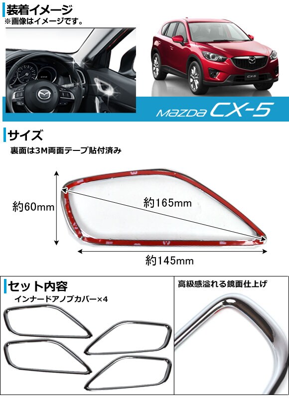 インナードアベゼルカバー マツダ CX-5 KE系 2012年02月~ ABS製 鏡面仕上げ メッキシルバー塗装 AP-INNDC-M08C 入数:1セット(4個)