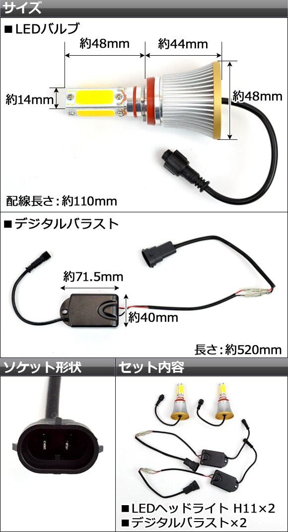 セット内容:LEDヘッドライトH11×2/デジタルバラスト×2