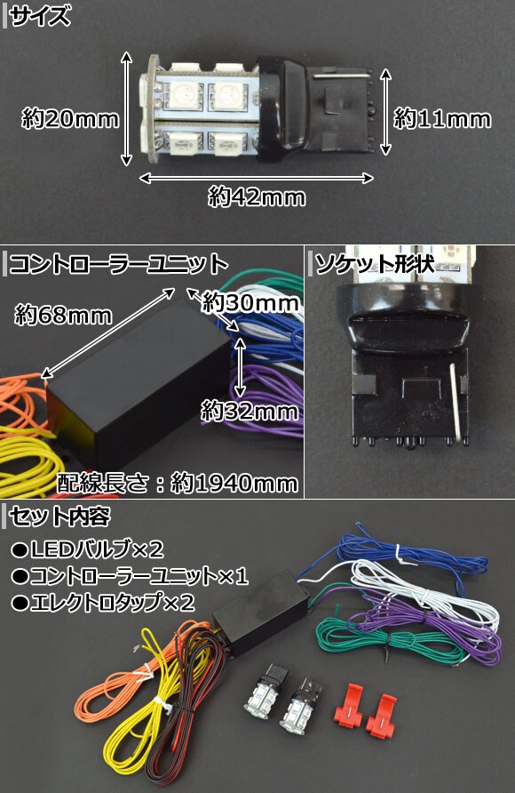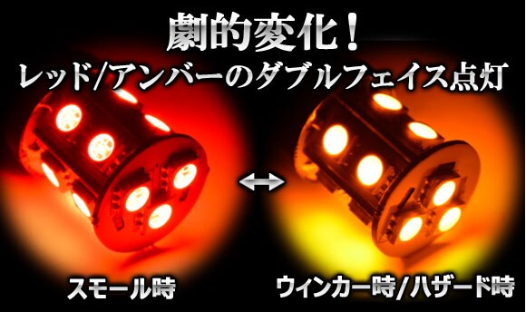 LED マルチカラーバルブキット レッド/アンバー T20 SMD 13連 12V専用 AP-MTT20-2C-13Y-R