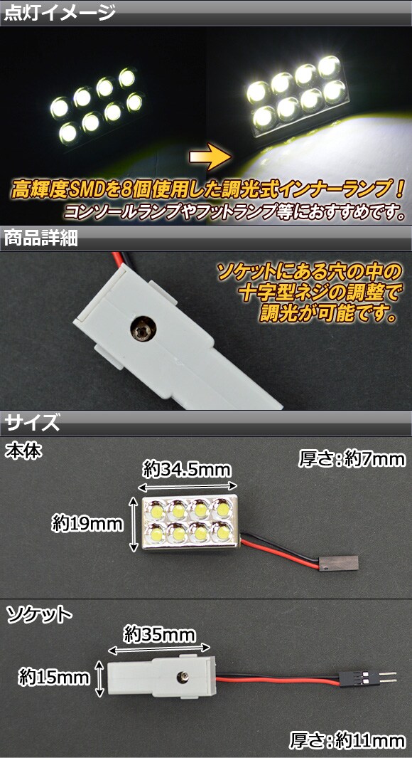 調光式 LEDインナーランプ SMD 8連 12V専用 AP-INN-LED-D