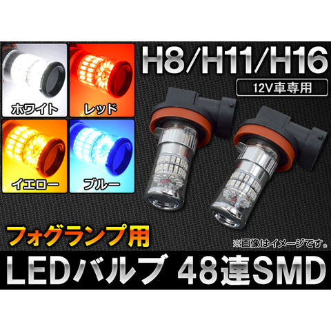 LEDバルブ SMD 48連 H8/H11/H16対応 フォグランプ用 12V専用 選べる4カラー 入数:2個 AP-SH11-1C-48
