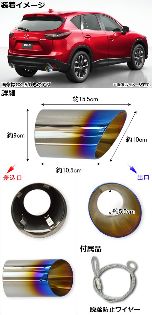 マフラーカッター マツダ CX-5 KE系 2012年02月~ チタン焼き ステンレス 鏡面 入数:2個