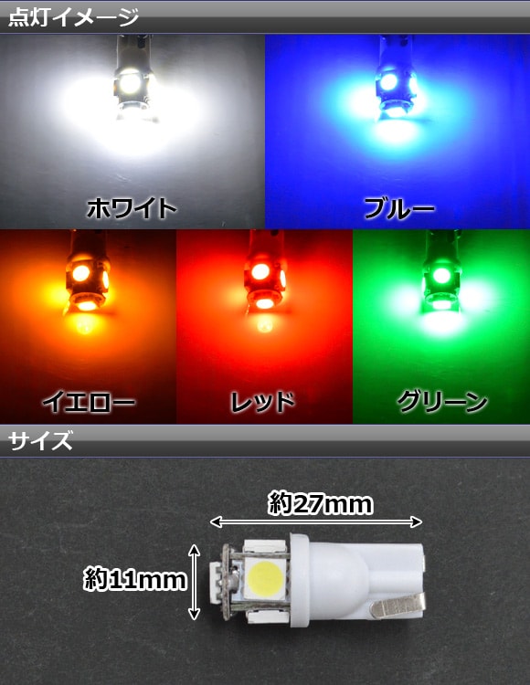 ホワイト AP-ST10-3CA-W ブルー AP-ST10-3CA-B イエロー AP-ST10-3CA-Y レッド AP-ST10-3CA-R グリーン AP-ST10-3CA-G 4562430337003 4562430337010 4562430337027 4562430337034 4562430337041 LED バルブ ポジションランプ ポジション スモールランプ スモールライト スモール ナンバー灯 ライセンスランプ 室内灯 ルームランプ カーテシランプ ドアカーテシランプ ラゲッジランプ バニティランプ 5発 5灯 5個 12V 12ボルト ウェッジ ウエッジ ウェッジ球 ウエッジ球 白 青 黄色 黄 赤 緑 ランプ ライト 幅広 金具 接点 照明 電球 電灯 発光 automobile motorcar オートモービル モーターカー カー 車 自動車 車両