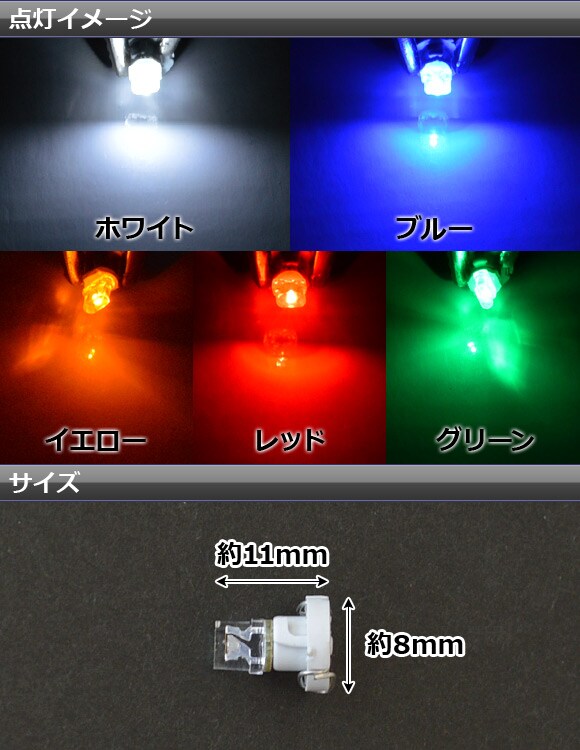 ホワイト AP-LED-T3-1FLT-WH ブルー AP-LED-T3-1FLT-BL イエロー AP-LED-T3-1FLT-YE レッド AP-LED-T3-1FLT-RD グリーン AP-LED-T3-1FLT-GR 4562430340782 4562430340799 4562430340805 4562430340812 4562430340829 LED バルブ エアコンパネル エアコン タコメーター メーター インジケーター シガーライター スイッチ インパネ ダッシュボード 灰皿 1発 1灯 1個 12V 12ボルト ミニベース ウェッジベース ウエッジベース ウェッジ ウエッジ ウェッジ球 ウエッジ球 白 青 黄色 黄 アンバー 赤 緑 ランプ ライト 照明 電球 電灯 発光 広角 広範囲 automobile motorcar オートモービル モーターカー カー 車 自動車 車両