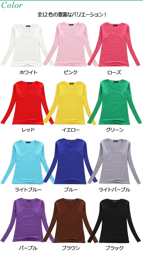 ロングTシャツ VネックTシャツ Tシャツ ロングVネックカットソー ロングカットソー Vネックカットソー 長袖Tシャツ 長袖VネックTシャツ トップス 無地 長袖 ロングスリーブ ストレッチ インナー カジュアル ファッション カラー シンプル ベーシック 定番 衣類 服 白 赤 黄 緑 青 紫 茶 黒 WHITE PINK ROSE RED YELLOW GREEN BLUE LIGHTBLUE LIGHTPURPLE PURPLE BROWN BLACK レディース 女性 女性用