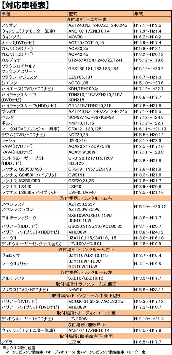 ※レクサス取付場所:マークレビンソン装備車はオーディオユニット裏