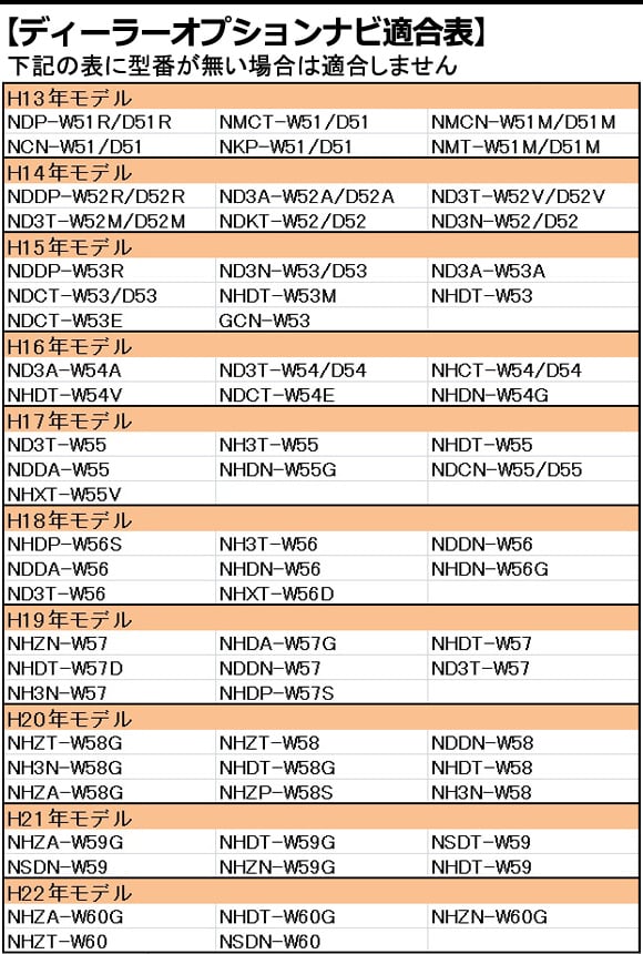 ●H13年モデル:NDP-W51R/D51R、NMCT-W51/D51、NMCN-W51M/D51M、NCN-W51/D51