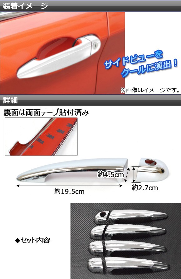 ドアハンドルカバー BMW 3シリーズ E46 セダン 後期 2002年~2005年 クロームメッキ 鏡面仕上げ 入数:1セット(8個)