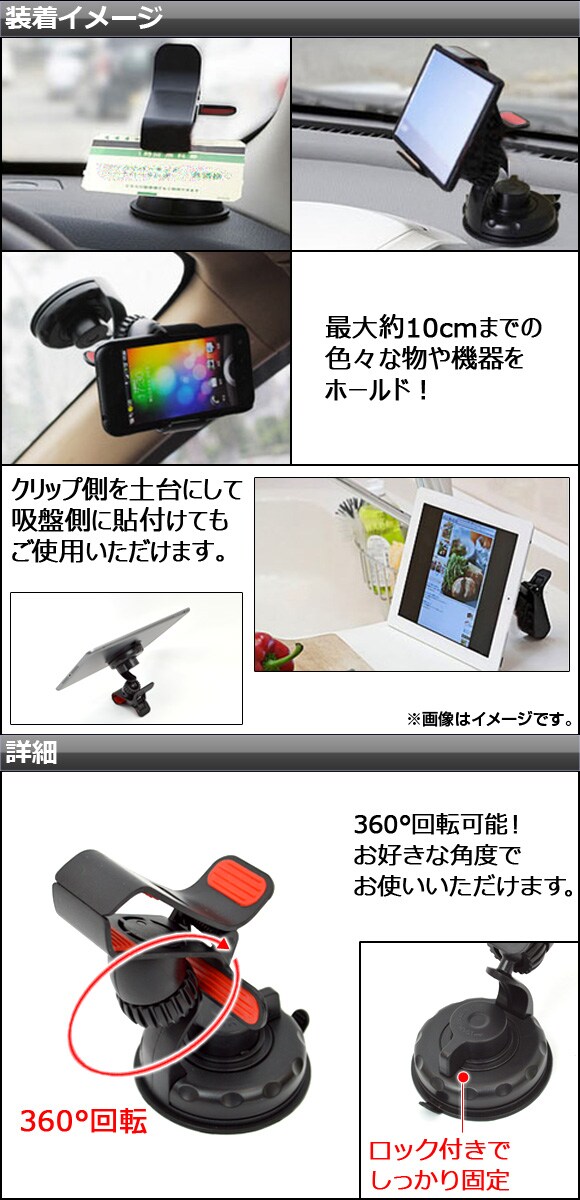 車載用 モバイルホルダー 吸盤固定タイプ クリップ型 AP-PHOH-F