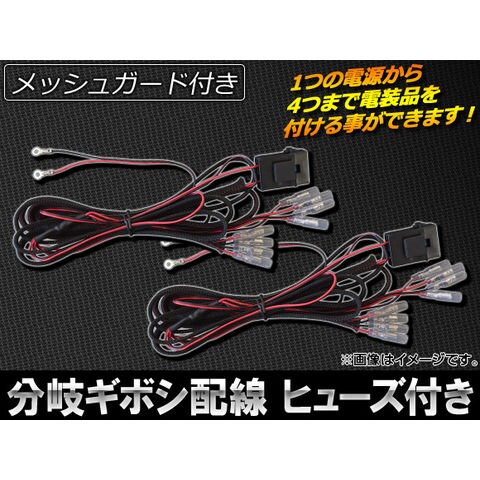 分岐配線 ギボシ配線 分岐 ギボシ 配線 ヒューズ ギボシ端子 延長コード 延長配線 電装品 メッシュガード メッシュ 圧着端子 電線 automobile motorcar オートモービル モーターカー カー 車 自動車 車両