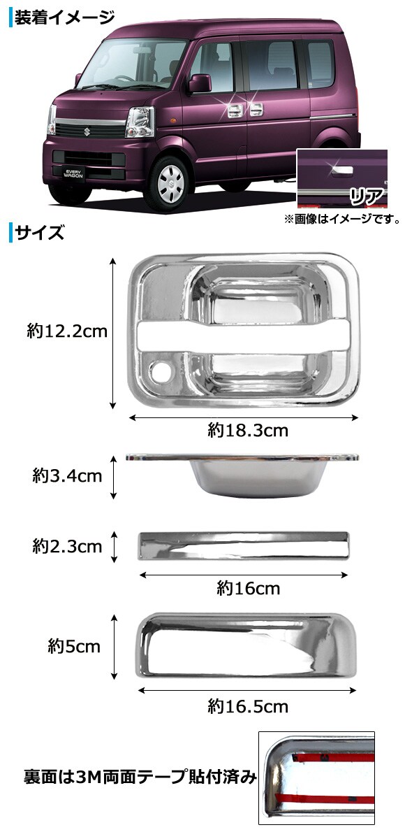 メッキドアハンドルカバー スズキ エブリイ/エブリイワゴン DA64V/DA64W 2005年08月~2015年02月 鏡面仕上げ AP-DHC-EVERY01 入数:1セット(9個)