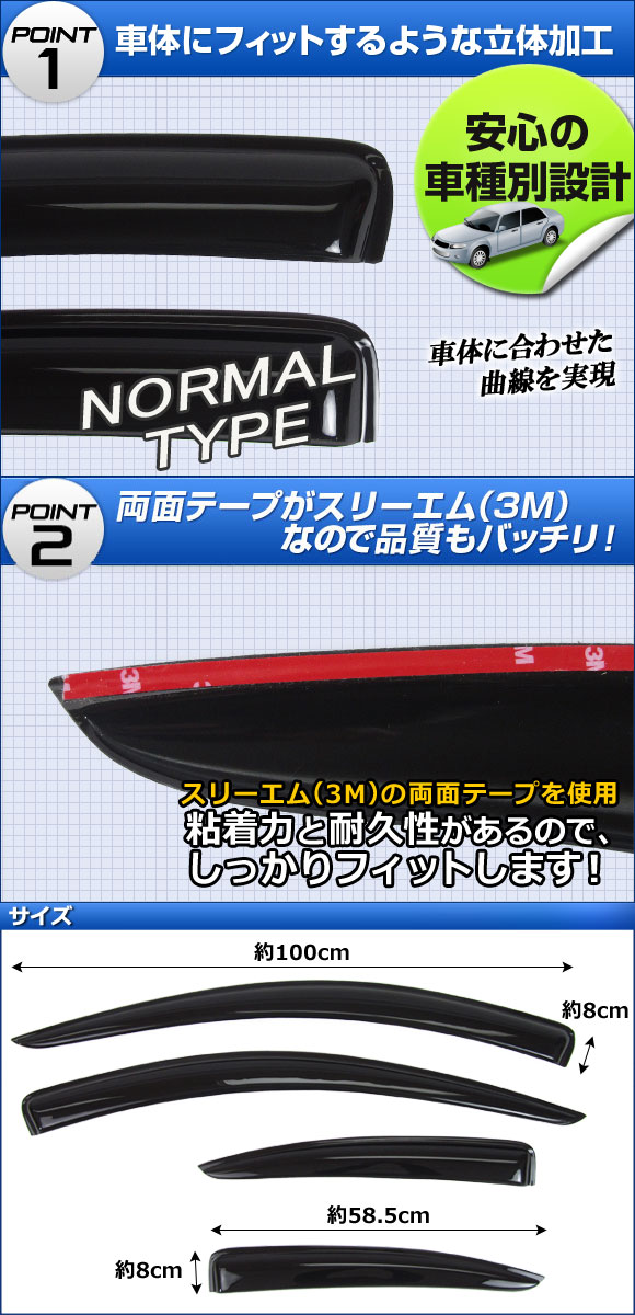 薄くて丈夫な車種別サイドバイザーです。