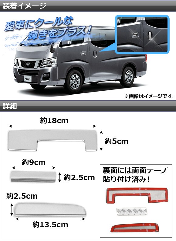 メッキドアハンドルカバー 日産 NV350キャラバン E26系 2012年06月~ ステンレス 入数:1セット(6個) AP-EX327