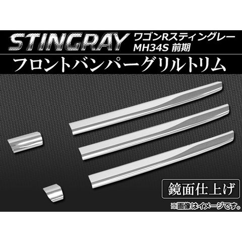 フロントバンパーグリルトリム スズキ ワゴンRスティングレー MH34S 前期 2012年09月~2014年07月 ステンレス AP-EX350 入数:1セット(5個)