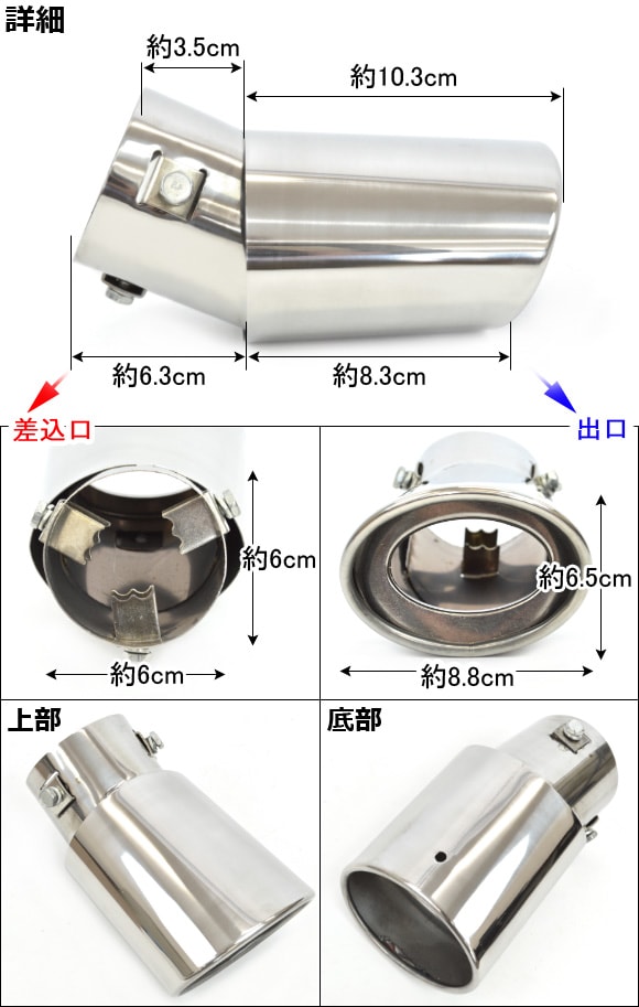 マフラーカッター シルバー オーバルタイプ 下向き 汎用 AP-MUFF-002