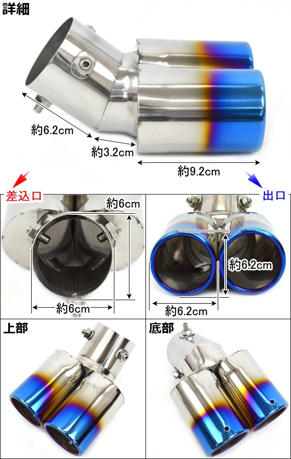 マフラーカッター 2本出しタイプ チタン焼き 汎用 AP-MUFF-006