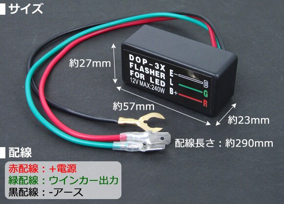 ■配線:赤(+電源)/緑(ウインカー出力)/黒(-アース)