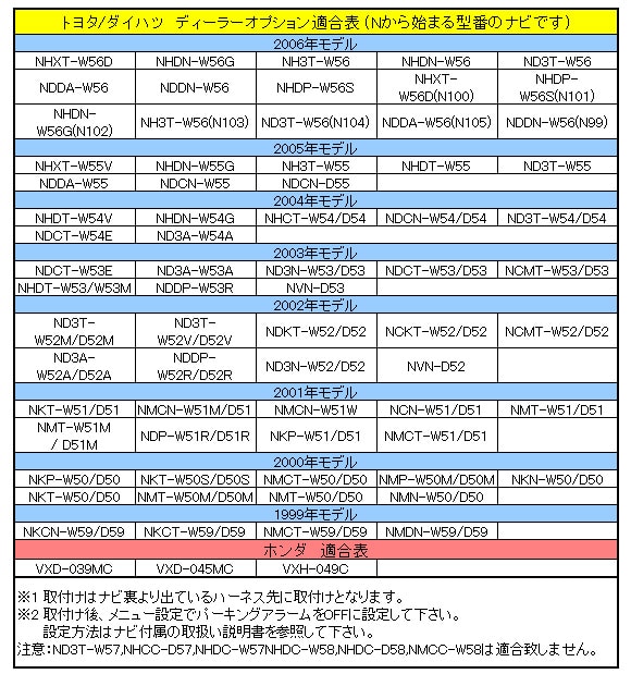 [トヨタ/ダイハツ ディーラーオプションナビ 適合品番]