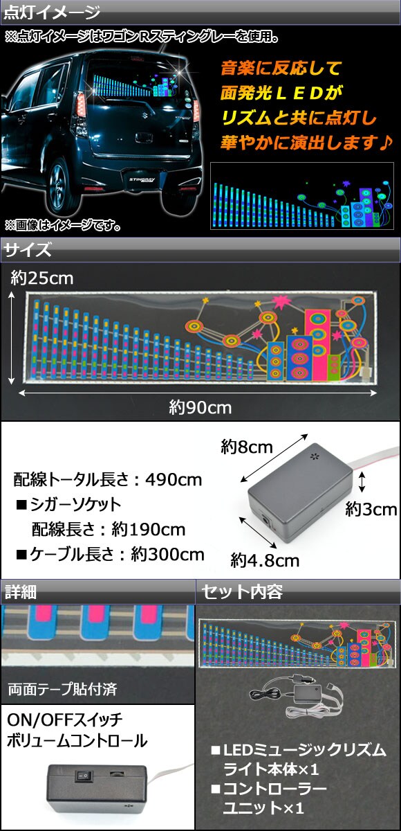 LEDミュージックリズムランプ ミュージックリズムライト ミュージックリズムランプ ミュージックリズムフィルムランプ カーミュージックリズムランプ ミュージック 音楽 リズム ランプ ライト リア リヤ リアー リヤー rear 背後 後方 シガーソケット LED 発光 面発光 点灯 点滅 電装 電飾 ガラス 汎用 automobile motorcar オートモービル モーターカー カー 車 自動車 車両