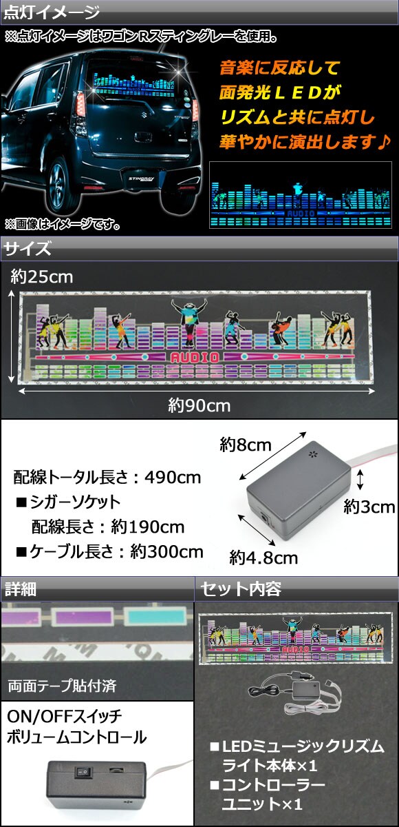 LEDミュージックリズムランプ ミュージックリズムライト ミュージックリズムランプ ミュージックリズムフィルムランプ カーミュージックリズムランプ ミュージック 音楽 リズム ランプ ライト リア リヤ リアー リヤー rear 背後 後方 シガーソケット LED 発光 面発光 点灯 点滅 電装 電飾 ガラス 汎用 automobile motorcar オートモービル モーターカー カー 車 自動車 車両