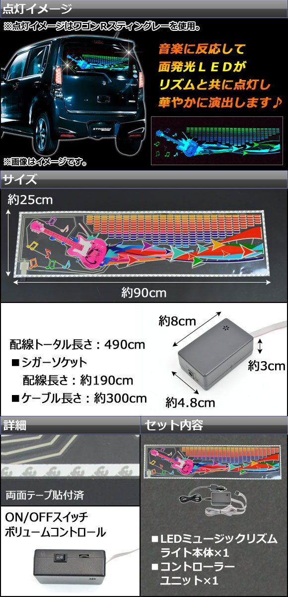LEDミュージックリズムランプ ミュージックリズムライト ミュージックリズムランプ ミュージックリズムフィルムランプ カーミュージックリズムランプ ミュージック 音楽 リズム ランプ ライト リア リヤ リアー リヤー rear 背後 後方 シガーソケット LED 発光 面発光 点灯 点滅 電装 電飾 ガラス 汎用 automobile motorcar オートモービル モーターカー カー 車 自動車 車両