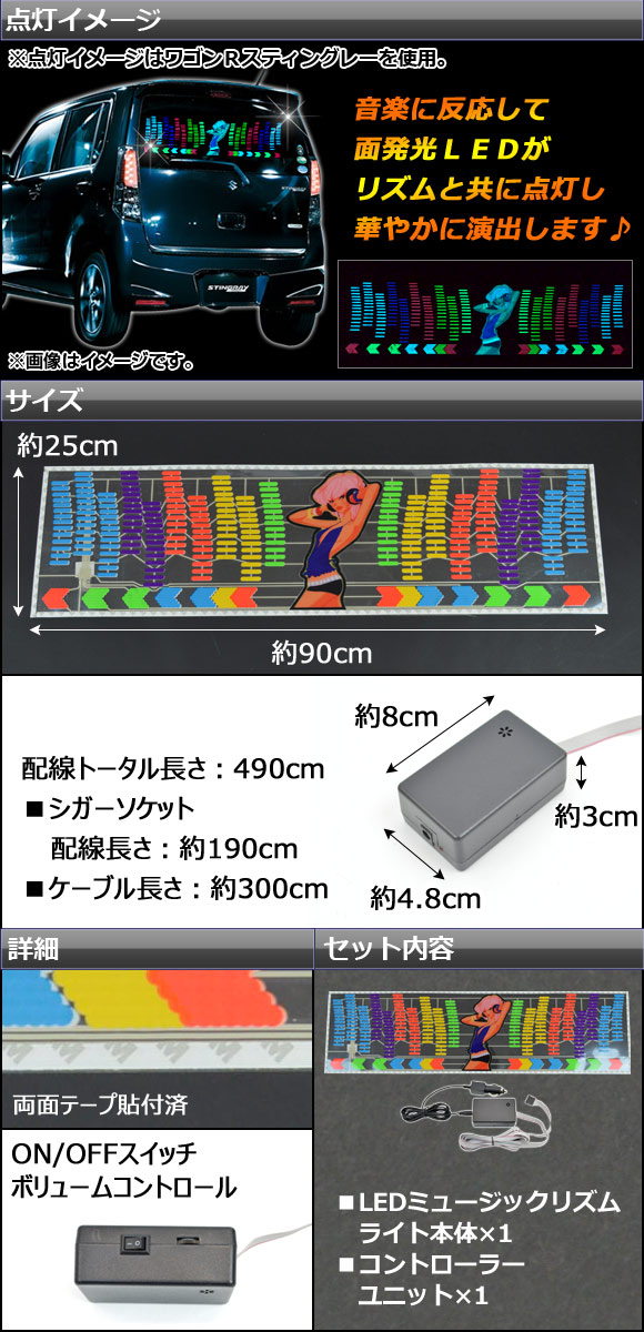 LEDミュージックリズムランプ ミュージックリズムライト ミュージックリズムランプ ミュージックリズムフィルムランプ カーミュージックリズムランプ ミュージック 音楽 リズム ランプ ライト リア リヤ リアー リヤー rear 背後 後方 シガーソケット LED 発光 面発光 点灯 点滅 電装 電飾 ガラス 汎用 automobile motorcar オートモービル モーターカー カー 車 自動車 車両