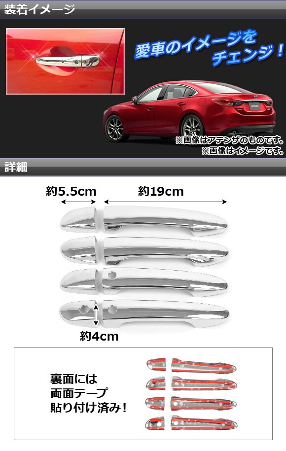 ドアハンドルカバー マツダ アテンザ(セダン/ワゴン) GJ系 2012年11月~ ハンドル側 ABS樹脂 入数:1セット(8個)