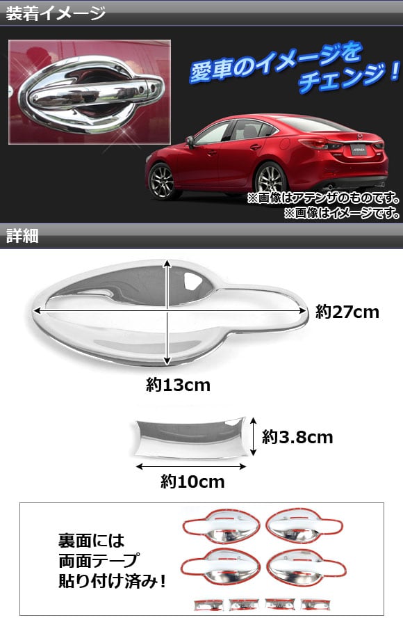 ドアハンドルカバー マツダ アテンザ(セダン/ワゴン) GJ系 2012年11月~ ドア側 ABS樹脂 入数:1セット(8個)