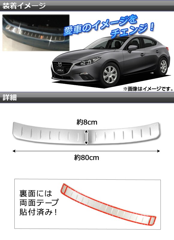 リアバンパーガーニッシュ マツダ アクセラセダン BM系 2013年11月~ ステンレス製 ヘアライン仕上げ APSINA-AXELA016