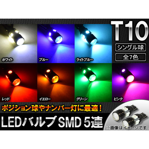 LEDバルブ T10 SMD 5連 選べる7カラー 入数:2個 AP-SINA-LED006