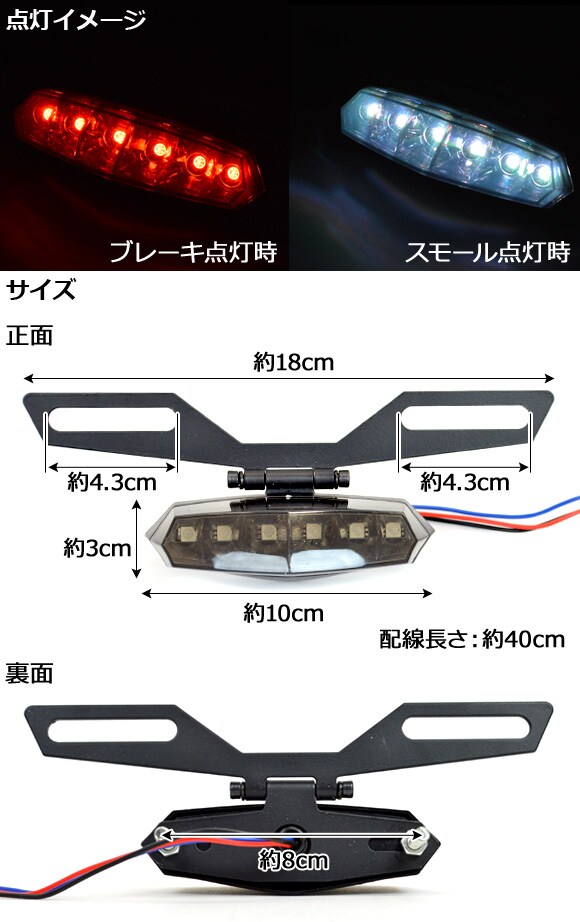 テールランプ スモークレンズ ナンバーステー付き ブレーキ連動 汎用 AP-BIKE-TR