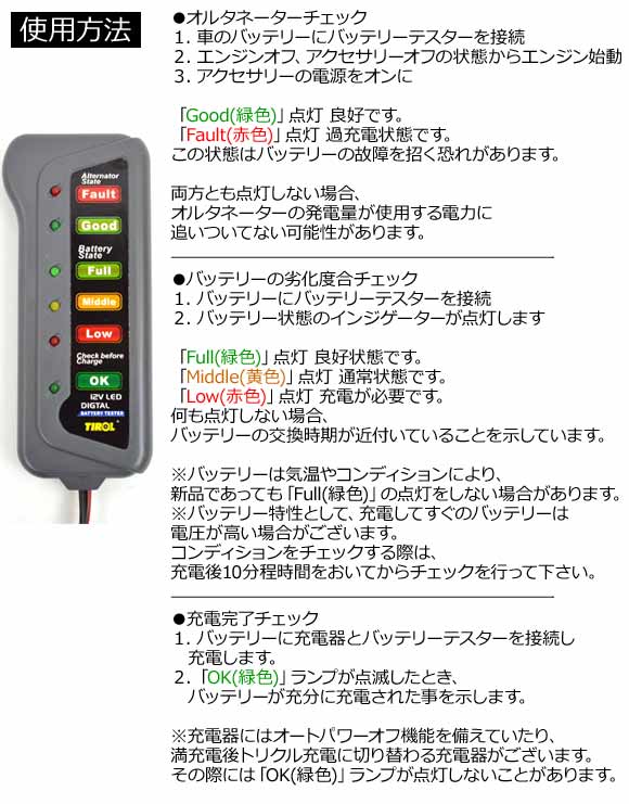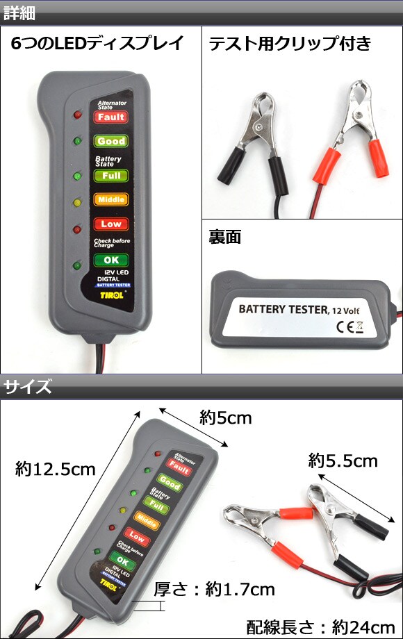 オルタネーター オルタネイター テスト テスター チェック チェッカー 12ボルト クリップ 汎用 4輪 2輪 CE CE認証 LED LEDディスプレイ 充電 過負荷 tool ツール 工具 整備 用品