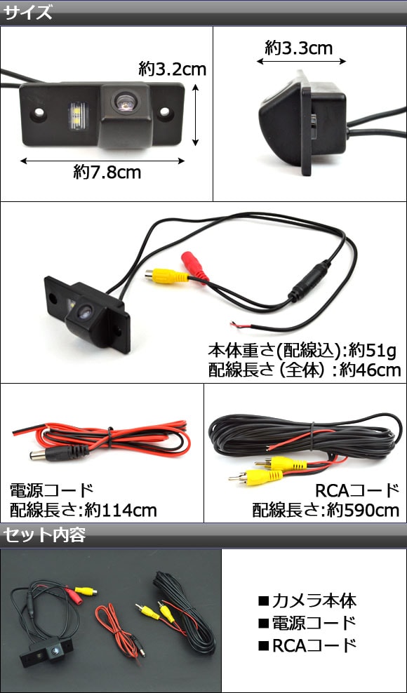 セット内容:カメラ本体、電源コード、RCAコード