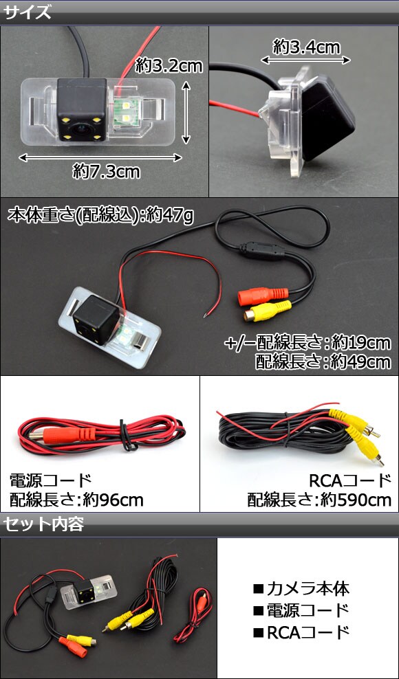 セット内容:カメラ本体、電源コード、RCAコード