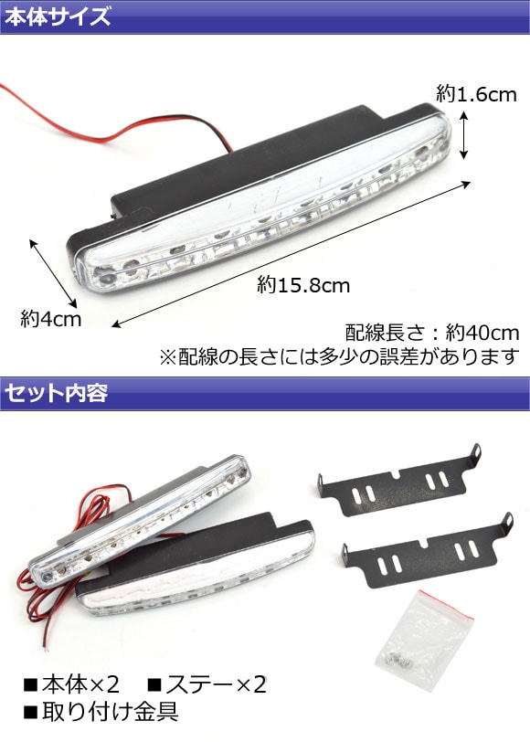 LEDデイライト ホワイト 片側8連 汎用品 入数:1セット(左右) AP-8LED-DL