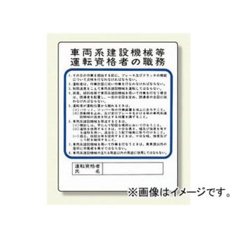 ユニット/UNIT 作業主任者職務板 車両系建設機械等 品番:356-35
