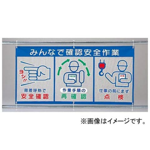 ユニット/UNIT 風抜けメッシュ標識(ピクト3連) みんなで確認安全作業 品番:343-33