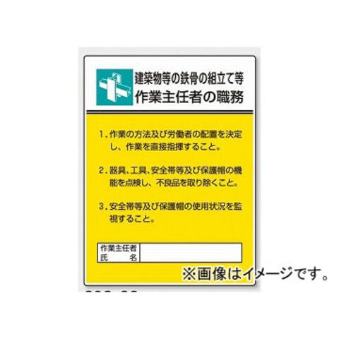 ユニット/UNIT 作業主任者職務板 建築物等の鉄骨の組立て等 品番:808-22