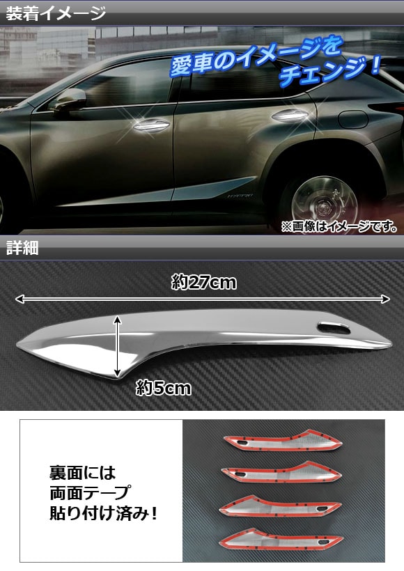 ドアハンドルカバー レクサス NX200t/NX300h AYZ10,AYZ15,AGZ10,AGZ15 2014年07月~ ステンレス スマートキー対応 入数:1セット(4個)