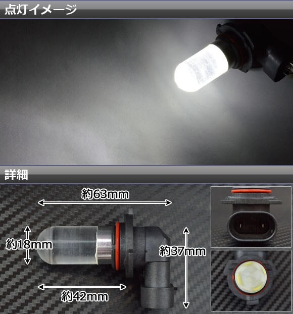 LEDバルブ ホワイト アクリルレンズ HB4 12~24V 20W 入数:2個 AP-HPHB4-20WY-4W