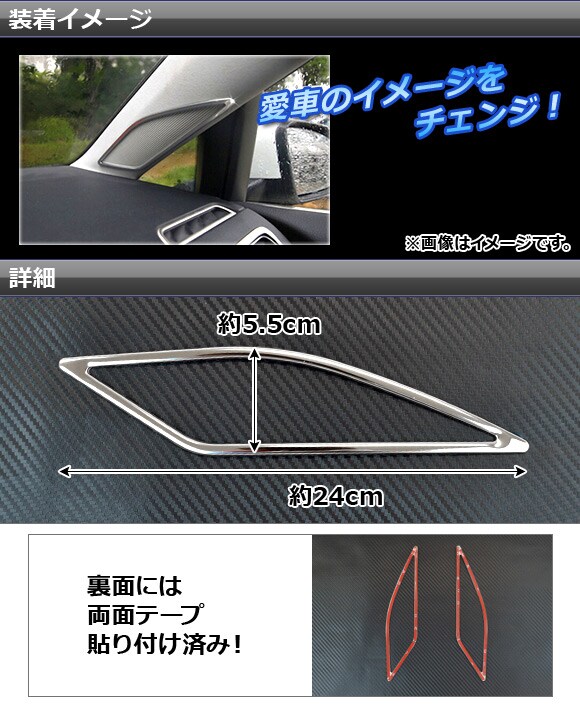 スピーカートリム フォルクスワーゲン ゴルフ7 AUCJZ,AUCPT 2013年04月~ ツイーター用 ステンレス AP-SPTRIM-GOLF7 入数:1セット(左右)